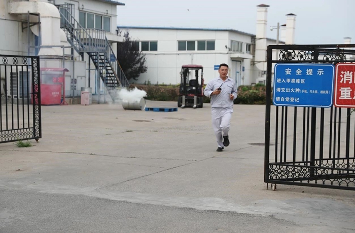 为进一步筑牢安全生产防线,压紧压实安全生产责任, 6月底,华腾化工组织开展了2024年危险化学品火灾事故应急演练。此次演练模拟场景为危险化学品库房入库作业时发生丙酮泄露着火,开展了火灾上报与先期处置、人员疏散逃生、微型消防站和消防救援队灭火等环节的演练科目。