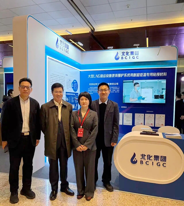 在科技创新成果展区,北京化工集团的展位以其展品的重大技术突破,吸引了众多能源装备、海洋工程、新材料领域的企业代表、技术专家驻足交流。其创新成果“绝缘板用聚氨酯胶粘剂”已通过法国GTT M3005、M4005认证和五大船级社认证,并在广东生产基地实现规模化、稳定化生产;“顶梁板用环氧胶粘剂”也已成功试产并成功通过法国GTT M3006、M4006认证。市场前景广阔。
