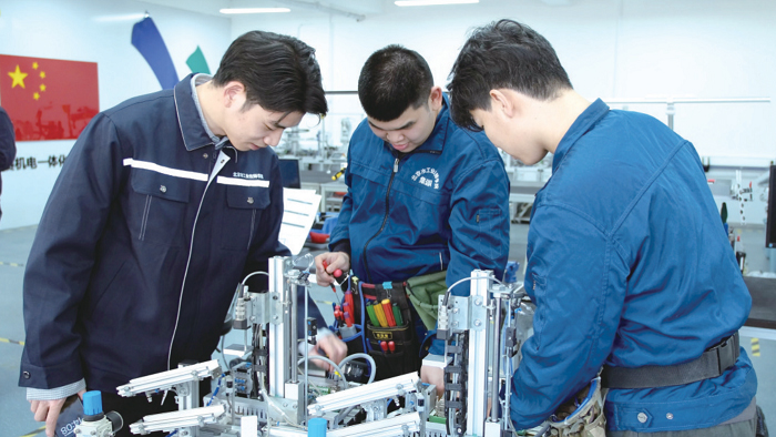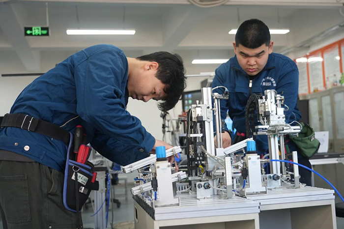2024年,在法国里昂举办的第47届世界技能大赛上,技师学院教师潘朝阳、罗自立在机电一体化项目中斩获金牌,为国家赢得荣誉,这也是技师学院自己培养的选手首次在世界技能大赛上实现金牌零的突破。